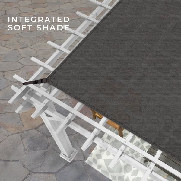 to withstand winds up to 100 mph*. Decked out with a chic sail shade canopy and a handy PowerPort™ that boasts 3 USB and 3 electrical outlets, this pergola ensures style meets substance.