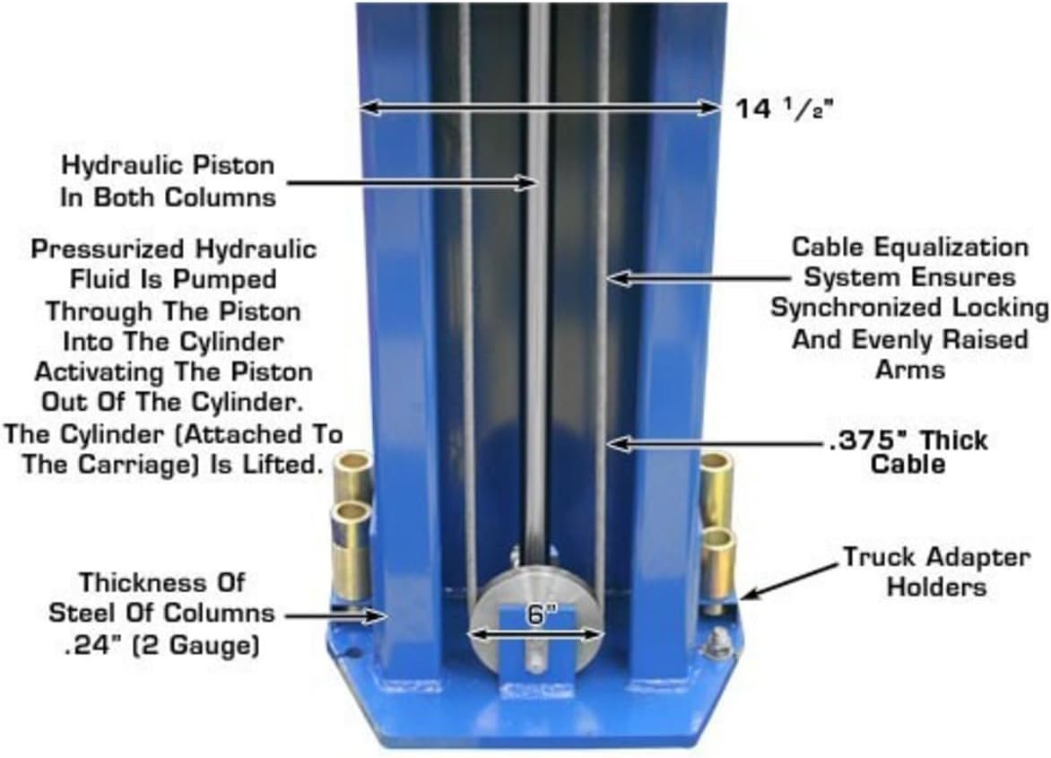 The Atlas® PV series represents the absolute best value for the customer who demands a heavy-duty professional grade two post lift at the lowest possible price. Atlas® has been manufacturing the PV series two post above ground lifts for over a decade. Thousands sold! Descriptions such as “bulletproof”, built like a brick outhouse, tougher than nails, and other such euphemistic phrases are used every day to describe any of the Atlas® PV series models.The Atlas® PV12PX is a commercial grade lift designed to accommodate both long wheel-base trucks and because of a low pad height, passenger cars. The distance between the symmetrical columns is 123″ with a drive through space of 109″. The extra distance between the symmetrical columns will allow the widest of vehicles or vehicles with wide rearview mirrors to be lifted or driven through. The increased length of the symmetrical arms coupled with the additional height of the included peg style truck adapter set allows the operator to safely raise long wheel-base trucks with a variety of running boards. The extra height means extra clearance allowing you to lift vans and box trucks without worry.The Atlas® ATEXH-PV12PX features three height settings, the lowest setting of 150 inches or 12 foot 6 inches requires the purchase of extra short cables.
