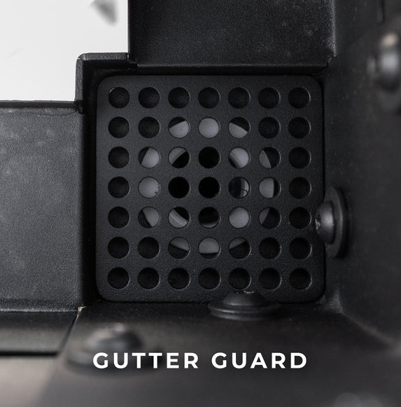 - Integrated drainage system: water is channeled through an integrated guttering system into downspouts in leg posts