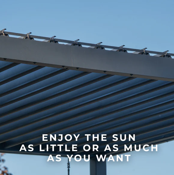 - Adjustable: louvers open fully to allow Sunlight through or close fully for complete shade and Rain protection