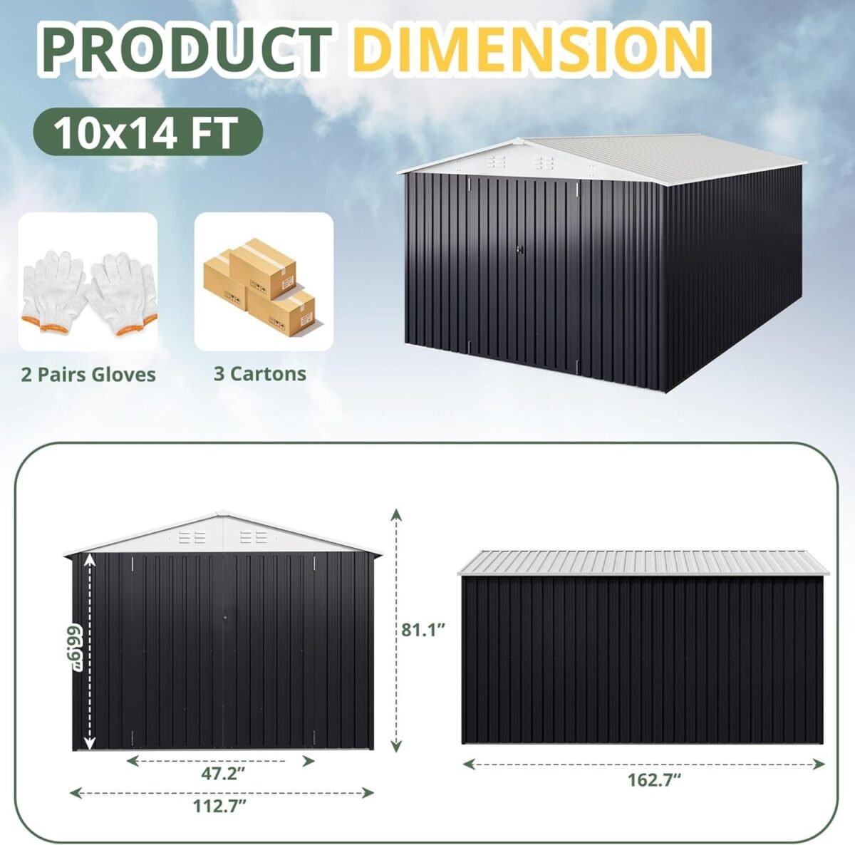Patiowell 10 ft. W x 12 ft. D Size Upgrade Metal Storage Shed (119 sq. ft.)