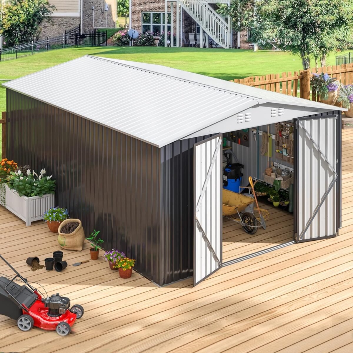 The Patiowell 10×12 Metal Storage Shed offers a generous and sturdy option for organizing