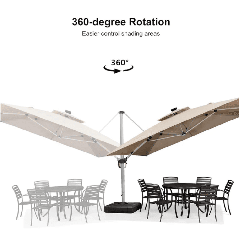Create the perfect outdoor retreat with the PURPLE LEAF Solar LED Cantilever Patio Umbrella — a blend of luxury, durability, and functionality!