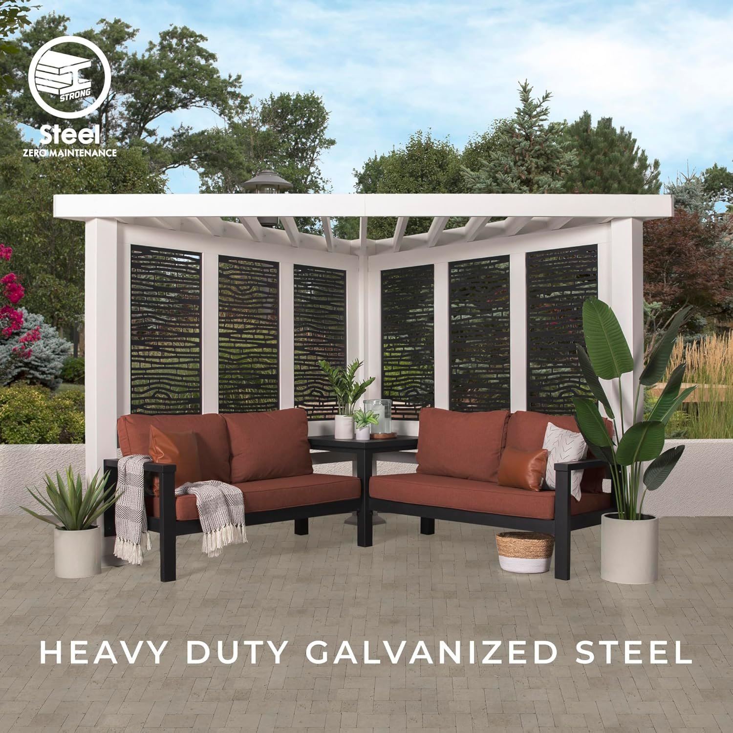- Zero maintenance with powder coated galvanized steel and stainless-steel hardware, fully galvanized and powder-coated for maximum protection against rust, corrosion and UV harm