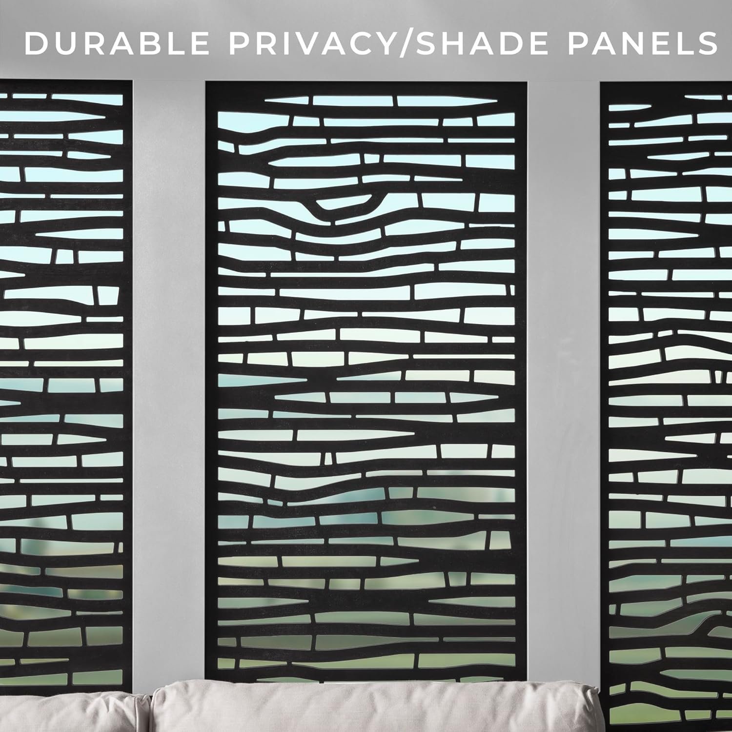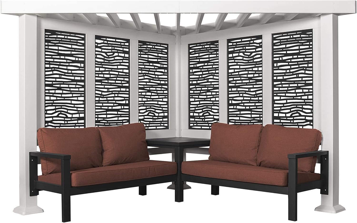- Durable composite panels create unique privacy and added shade, modern design concept with stylish black finish delivers popular appeal