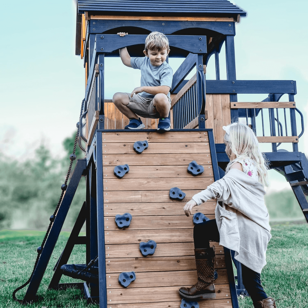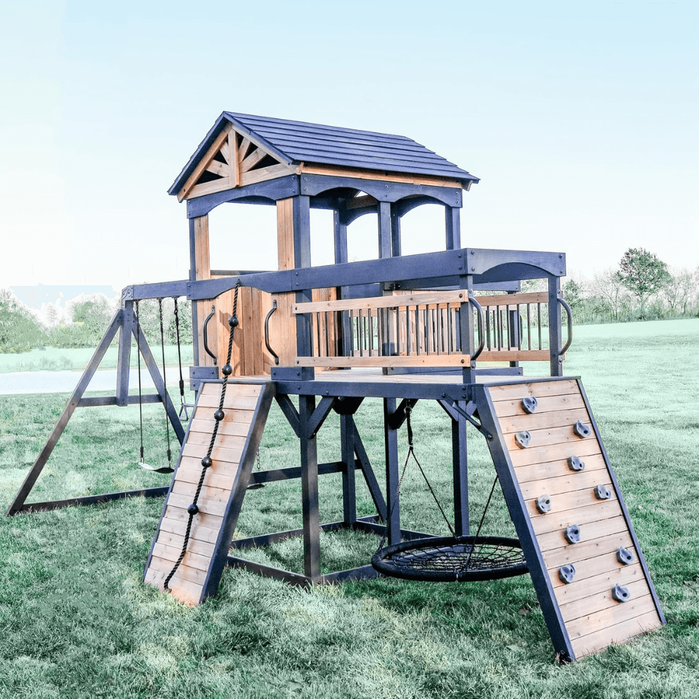 Elevate your backyard with the Timber Crossing Swing Set—a perfect blend of adventure, durability, and timeless design that brings families together for years of unforgettable playtime!