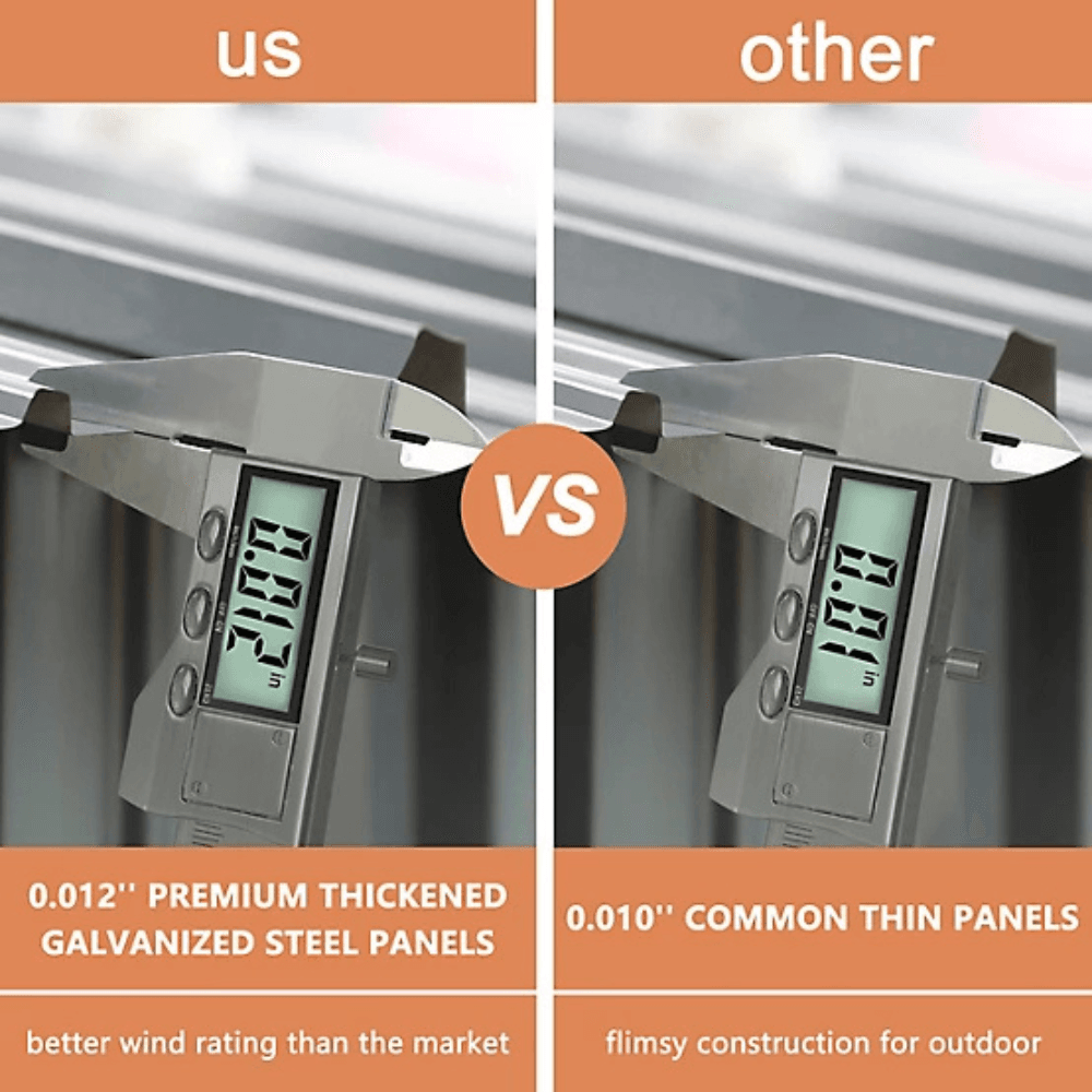 Rust and corrosion-resistant for long-lasting durability. Weather-resistant panels protect against rain, wind, and sun exposure.